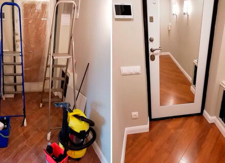 Оставьте нас наедине с работой, а сами отправьтесь по делам. Правда стоит учесть, что по технике безопасности нельзя оставлять человека в закрытом помещении. Вы можете оставить ключи от квартиры клинеру, консьержу или соседям.